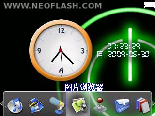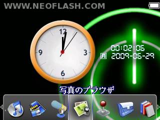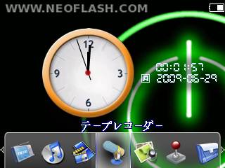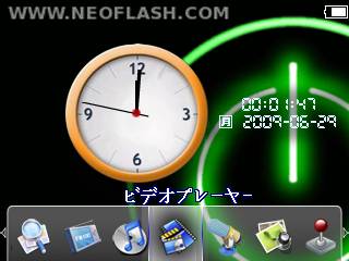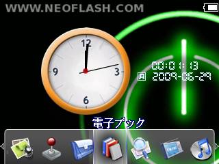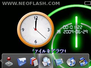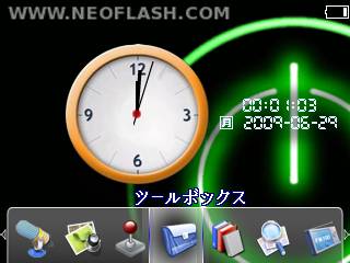 主なインターフェースの下で“左ボタン”、“(マウスの)右ボタン”によって異なっているオプションにブラウズして、<オーディオのプレーヤー>、<ビデオのプレーヤー>、<テープ・レコーダー>、<ゲーム><ピクチャーのブラウザー>、<道具箱>、<電子書籍>、<ファイルのブラウザー>、<ラジオ>、9つの機能のモジュールがあって、“OK”の鍵盤によってサブメニューに入ります。